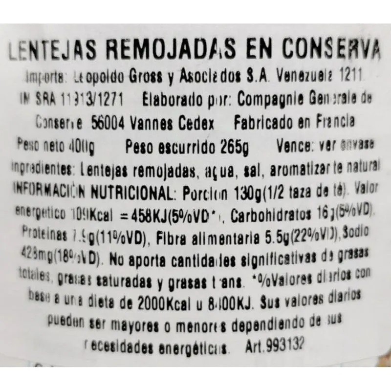 Jean Nicolas Lentejas 400Gr