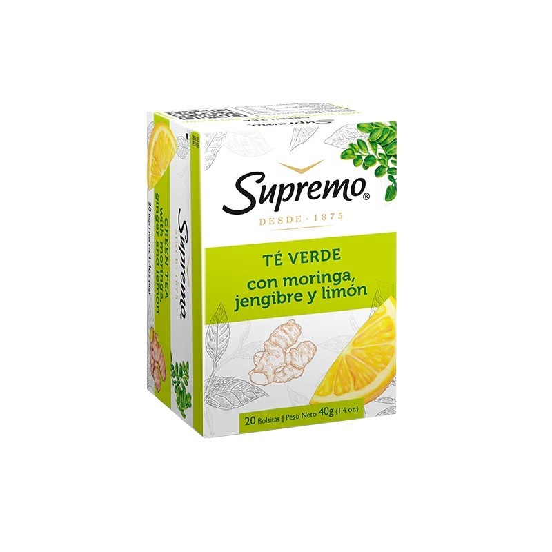 Supremo Te Verde Con Moringa, Jengibre Y Limon 20 Sobres
